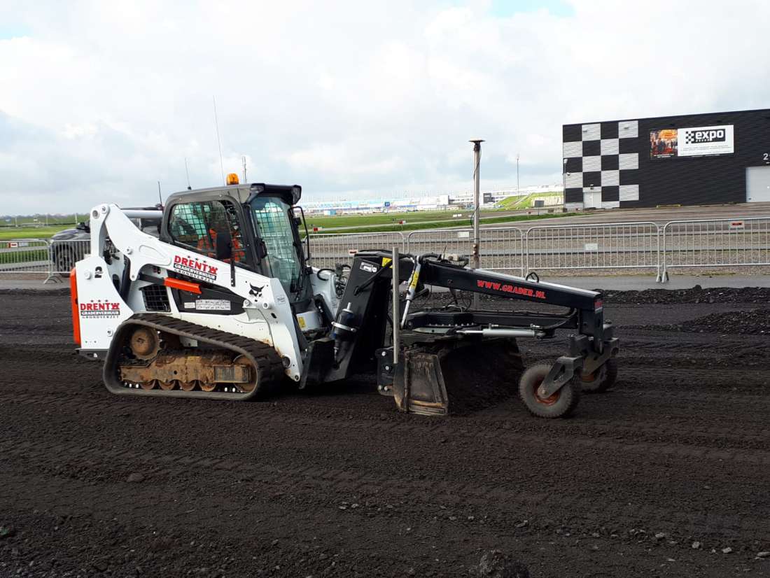 Der Kompaktlader verfügt über einen eigenen LKW als Transportmittel und kann daher schnell und flexibel eingesetzt werden. Die Maschine ist mit 2D / 3D-GPS ausgestattet, wodurch es möglich ist, mit diesem Mini-Grader präzise zu arbeiten. Um einen besonders hohen Einsatz zu gewährleisten, ist die Maschine zudem mit einem Behälter, einem Rollenbesen und Palettengabeln ausgestattet.